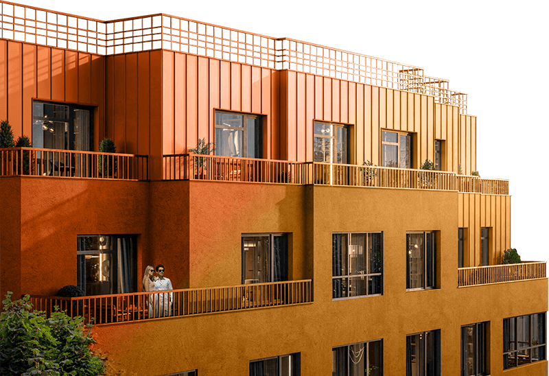 Лобби каждого корпуса уникально и отражает название своей башни через формы, текстуры и детали, становясь материальным воплощением музыкальных инструментов и их неповторимой эстетики.